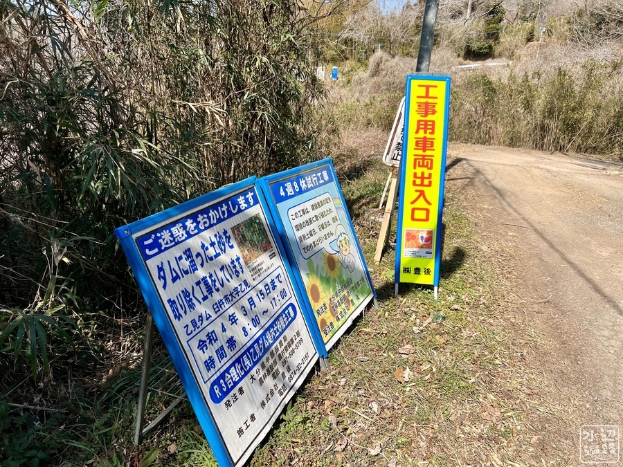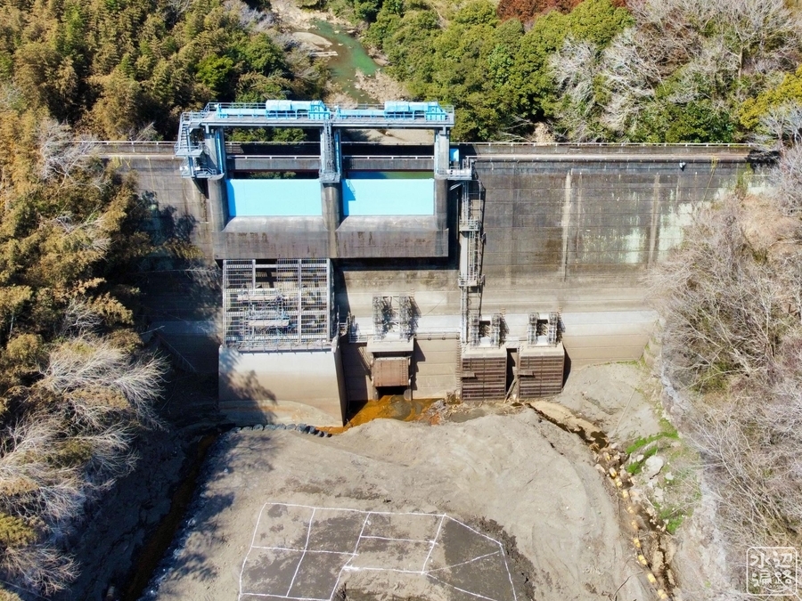 県営の農業防災ダム。訪れた際はダム湖内にたまった土砂を取り除く浚渫工事中だった。