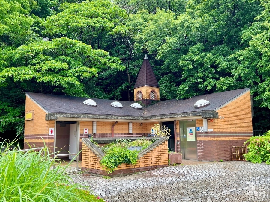 トイレの建物もデザインが凝っている。