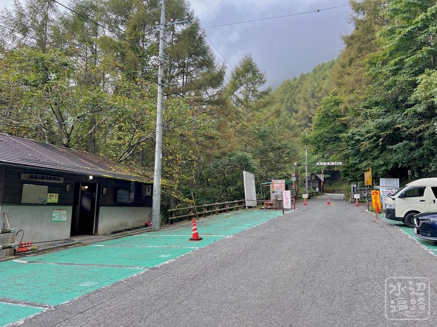 奈良田湖畔(西山ダム)にある登山者用無料駐車場近くのバス停から始発のシャトルバスが出ている。