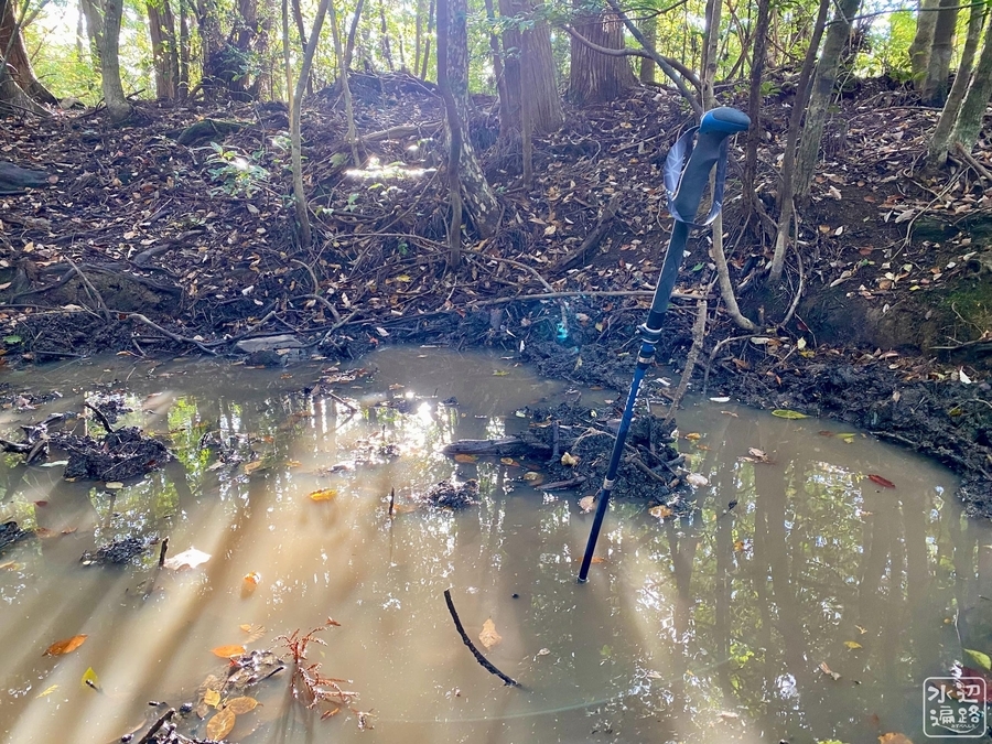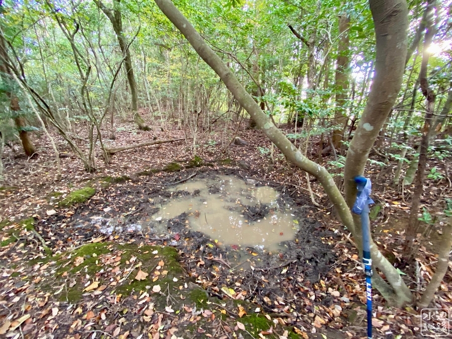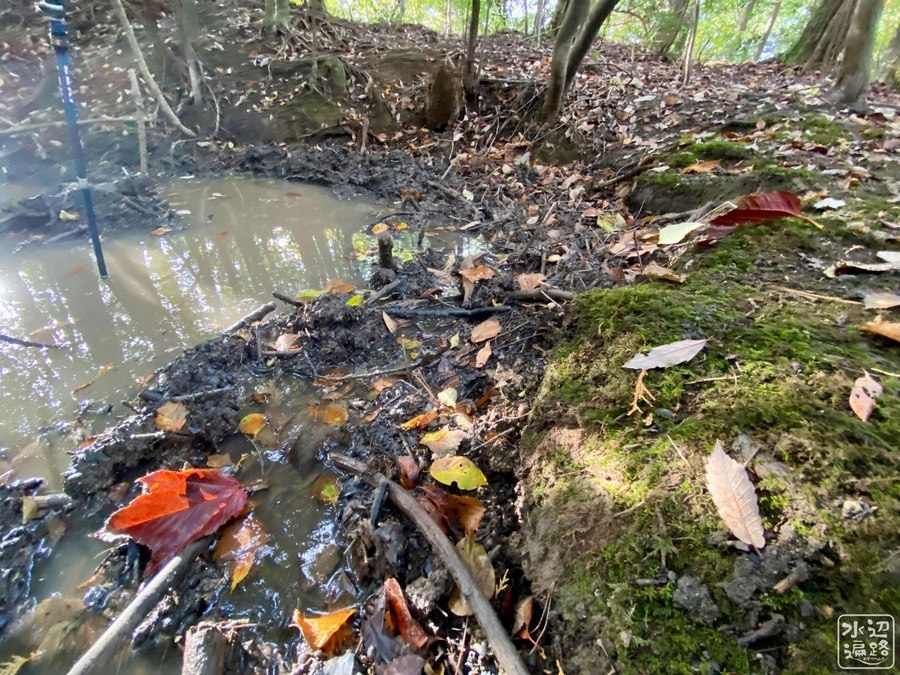 ヌタ場のような水たまり状の池。