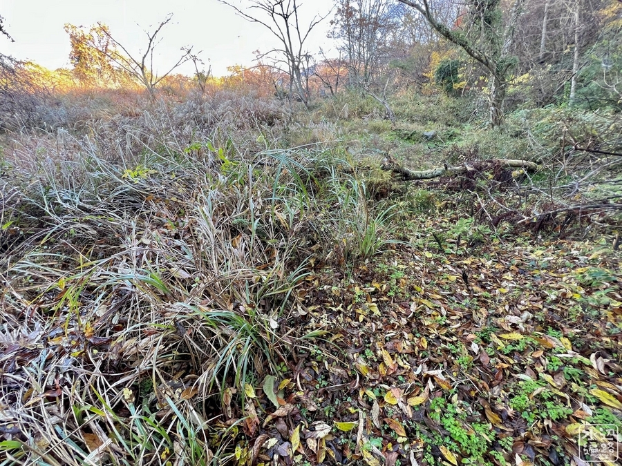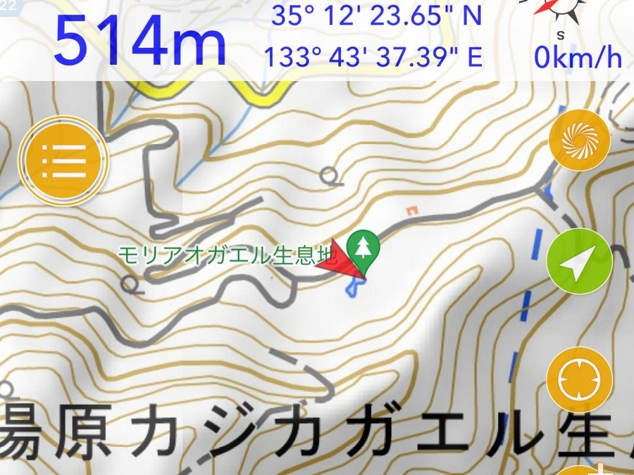 歩きまわっているとヤブの中になかば埋もれて「モリアオガエル生息地」の案内板があった。ナビは標高520mほどを示していた。