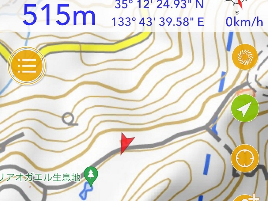 一方、Googleマップの方は「モリアオガエル生息地」として小さな池がマークアップされている。(下写真:アプリによって地理院地図をベースにGoogleマップの地点データを重ねている)