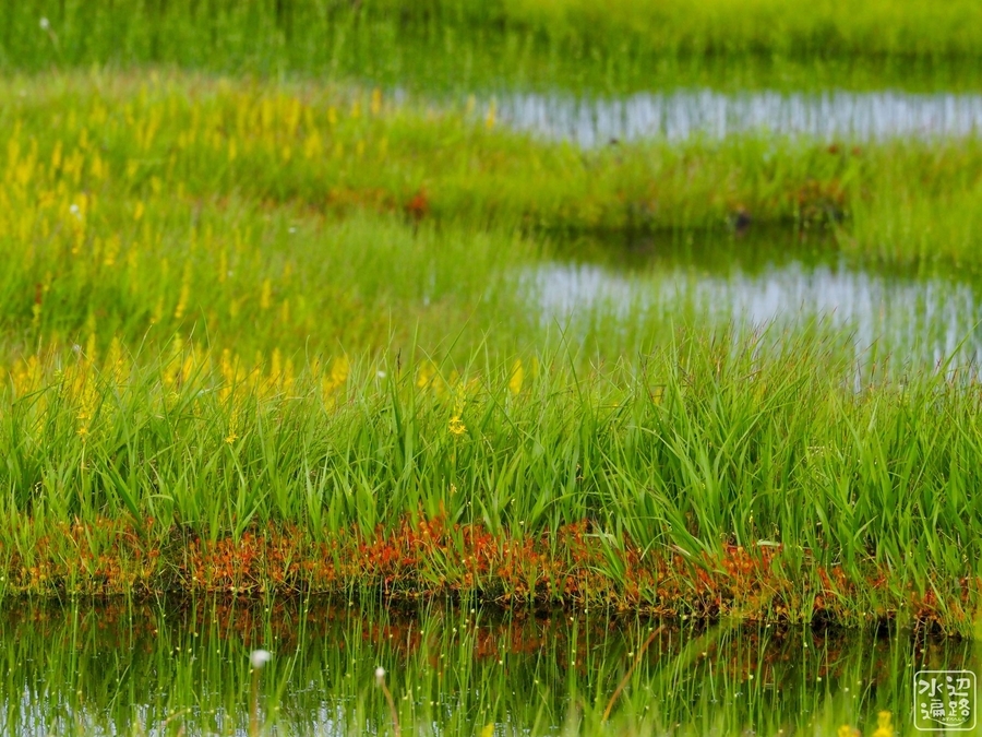 この湿原の一角に明星湖と明月湖があるが、池塘群を横目に見ながら分岐から今しばし下り方向に歩く。
