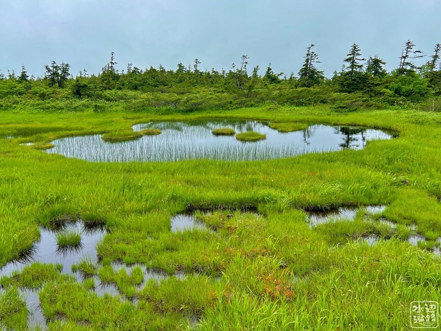 吾妻連峰では最大規模の数をもつ池塘群。ひとつひとつの池塘の規模が比較的大きい。