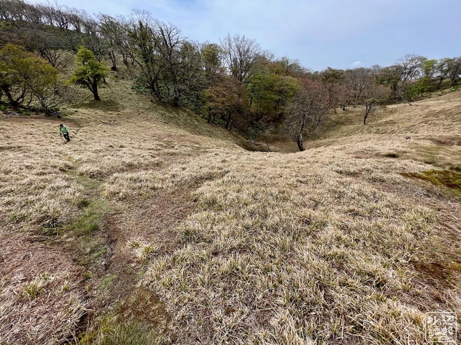 周辺はあちこちに陥没が。岩の露頭も。