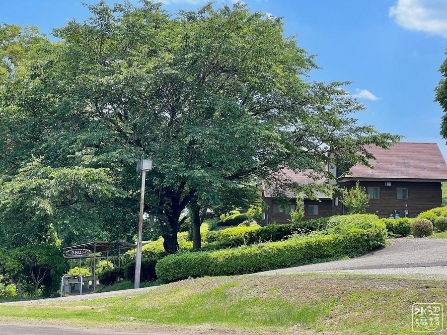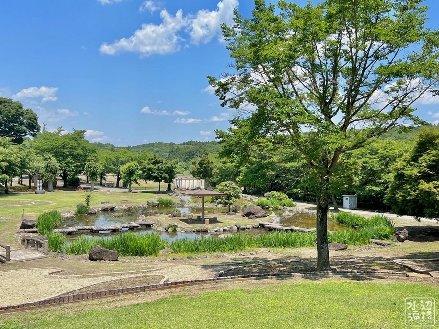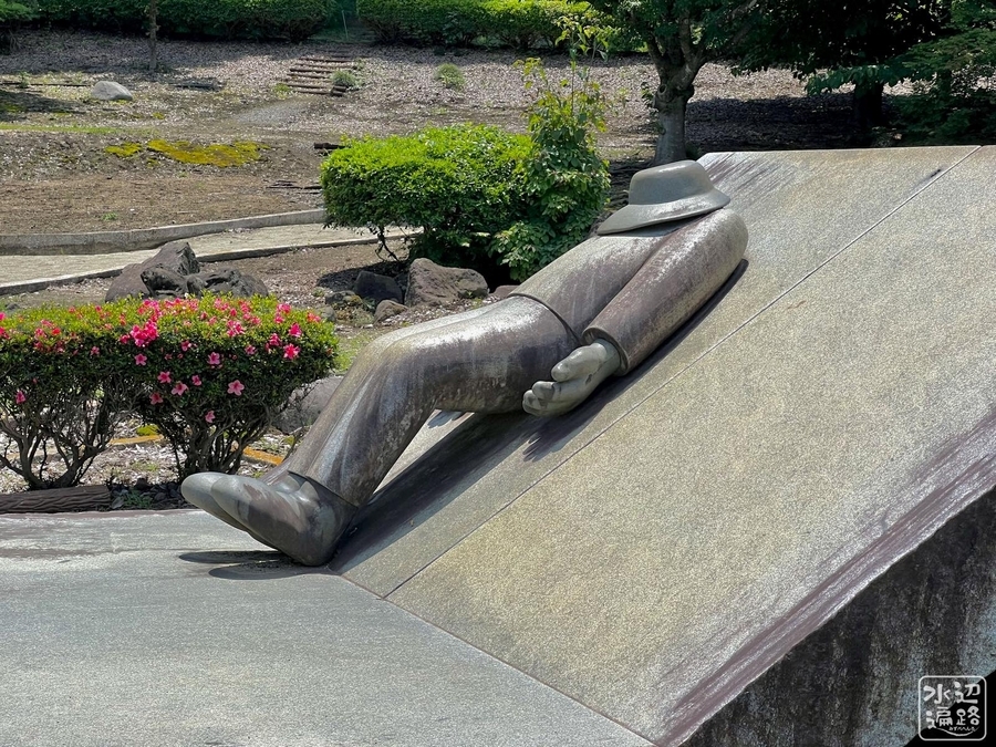 2024-06-04 湯けむりふれあいの丘の池(栃木県大田原) 栃木県 湯けむりふれあいの丘は、コテージのあるキャンプ場が隣接した日帰り温泉施設。広々として出入り自由な公園のような丘に池とキャンプ場がある。 ちょっと気になる癖ありオブジェ マークした場所は日帰り温泉駐車場。