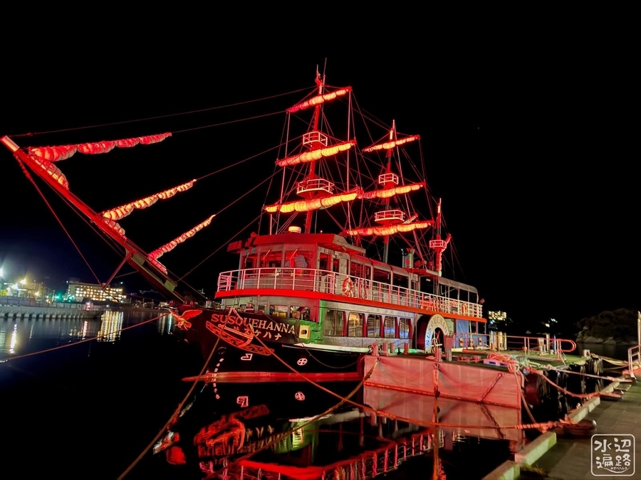 花火と黒船ライトアップ