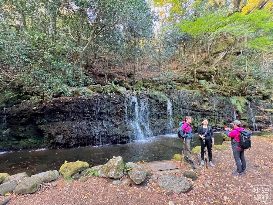 角石で護岸されており人の手が入っている。滝の景観価値を高めるためのデザインだけでなく、多くの観光客が訪れるため、足場を固める役割もありそう。