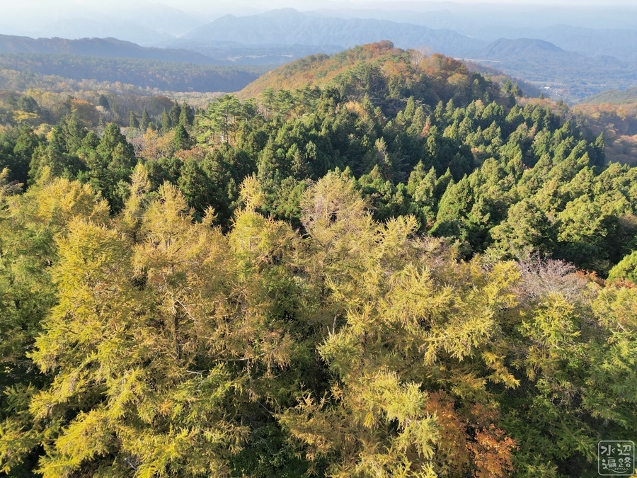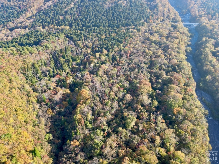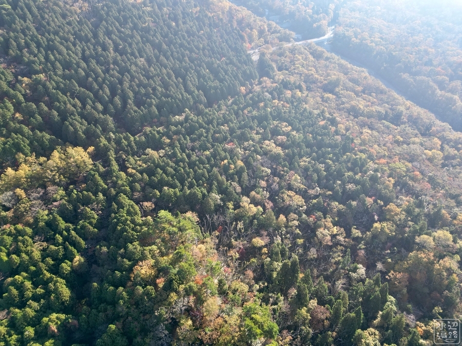 Googleマップ上で硯ヶ池とマークアップされた場所を空撮。しかし池の水面らしきものは捉えられず。