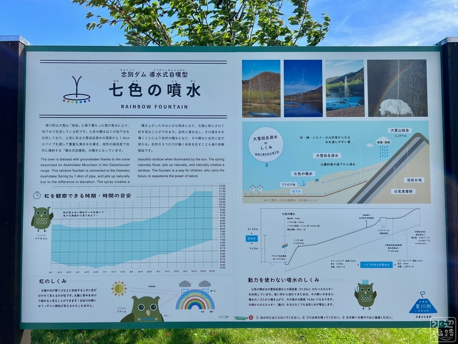 大雪山の方な地下水と地形の高低差を利用した自噴式の噴水。