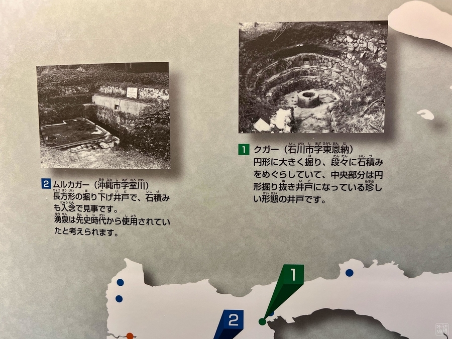 ダムのみならず沖縄の水文化に関するパネル展示も充実。ダムができる前の沖縄の生活水源は「ガー」と呼ばれる井戸だった。現在も現役のものも含め数多くのガーが見られる。