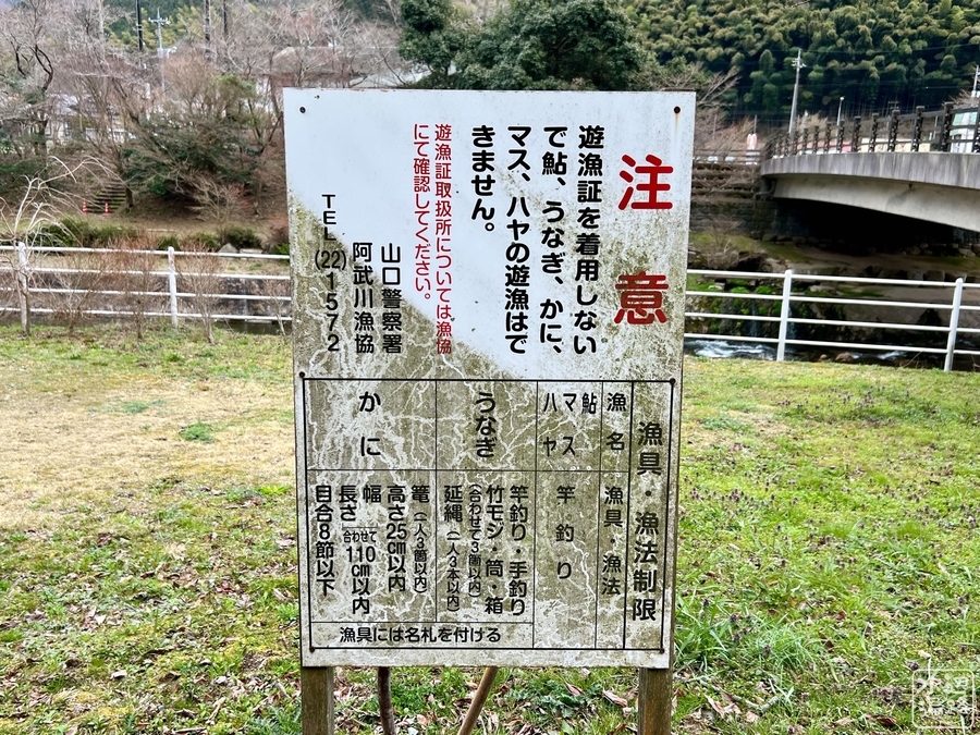 釣り、遊泳、ボートなど立入禁止看板あり。
