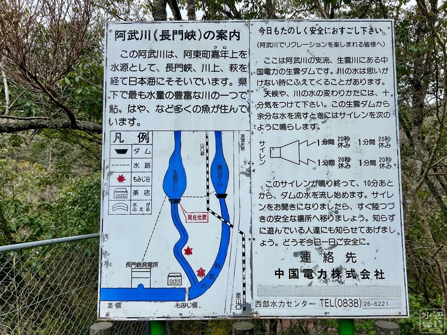 釣り禁止。ダム下流側の遊歩道は通行止め。