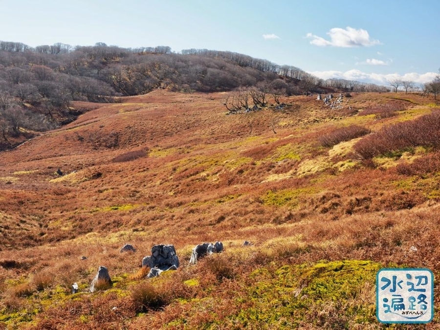 ゆるやかに起伏する台地、遮るもののない青い空、そして岩、苔、池といった要素が並び、初夏や秋には永遠のような景観を呈することから、山上の「日本庭園」とも呼ばれる。