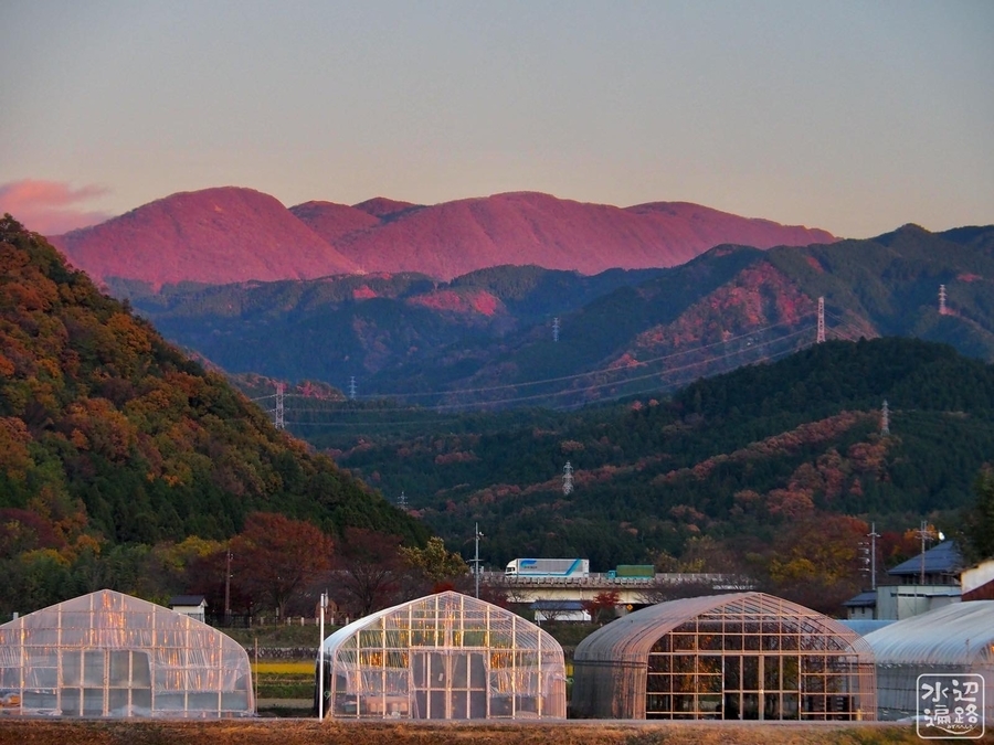 途中、三重県側を見渡すと、鈴養湖がよく見えた。鈴養湖は中里貯水地が正式名称で、中里ダムが堰く人造湖。中里ダムは、なんと堤体の体積が日本一。見方によっては日本一、でっかいダムといえる。