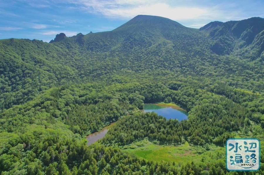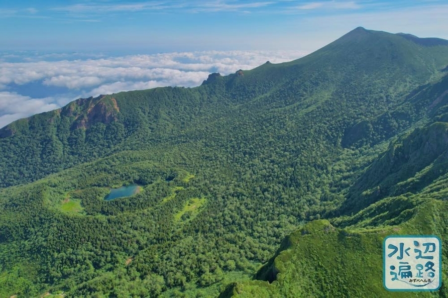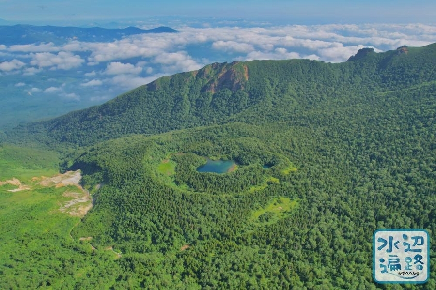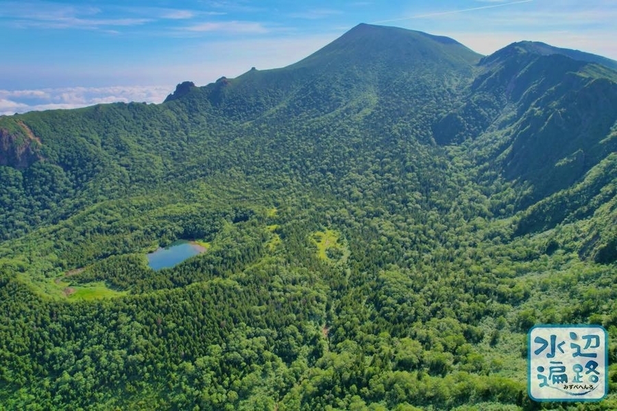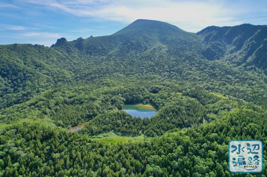 百名山・岩手山の西岩手カルデラ内にある湖面標高1,450mほどの火口湖(火口原湖)。