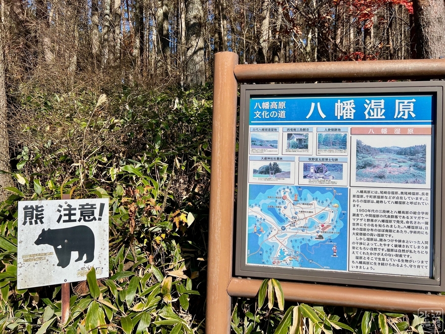 その山里の奥離にたたずむのが八幡湿原。これは八幡高原に点在する複数の湿原や沼の総称であり、日本における中間湿原の南限とされ、日本の重要湿地500にも選ばれている。