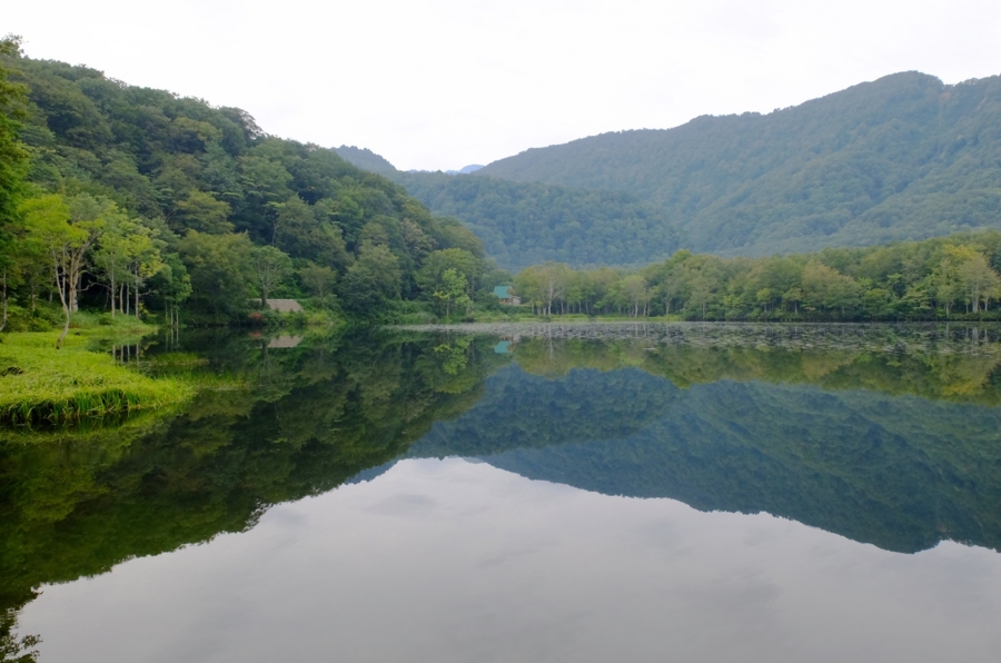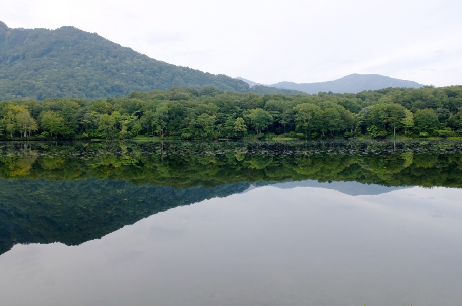 延々10km以上、舗装された林道白池線という一本道を上っていくうちに標高は1000mを越えた。とつぜん周囲1kmの大きな池がとつぜん現れて息をのんだ。