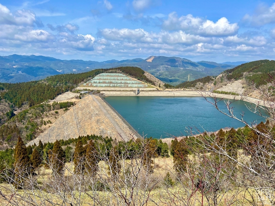 天山のスケール感がたまらない揚水式発電用の上池(上部調整池)。下池は厳木ダム。