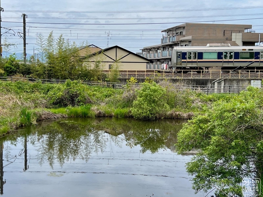 王仁公園(わにこうえん)内にあるビオトープ池。調節池を兼ねている。 駐車場有料。