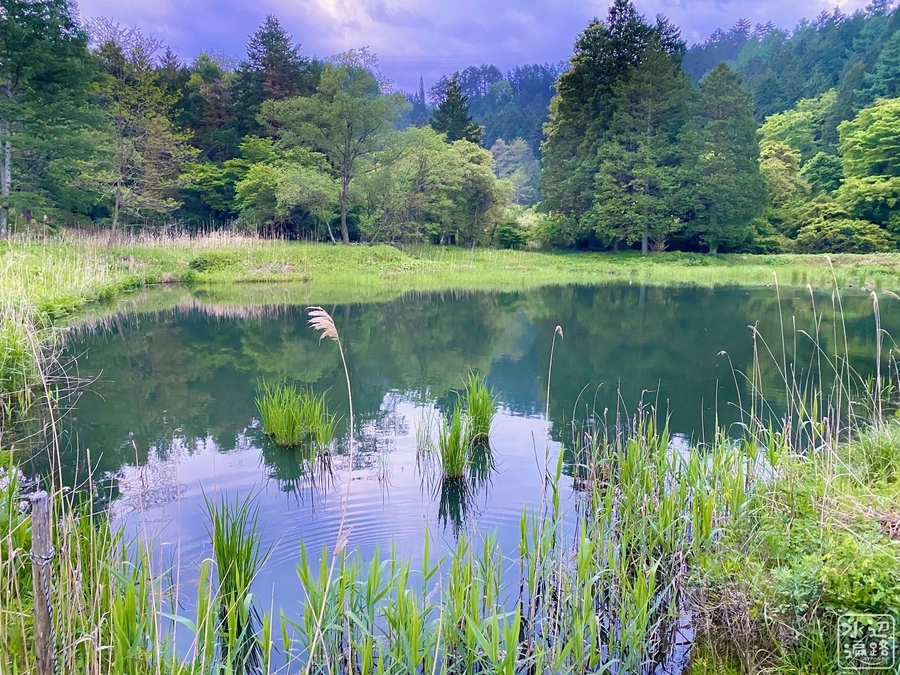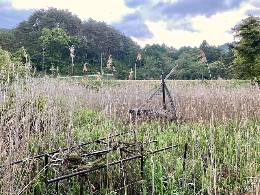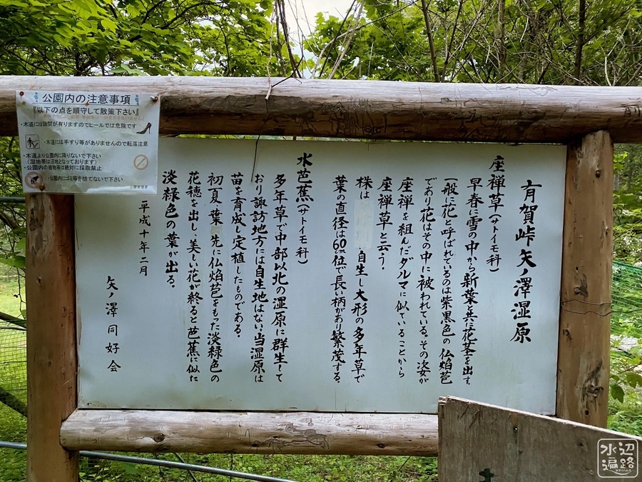 池畔には有賀峠矢ノ沢湿原が広がり、「ザゼンソウの里」として遊歩道が整備。未舗装ながら広い駐車場にはハッピードリンクショップの自販機が。同自販機は山梨から長野にかけての地場名物。