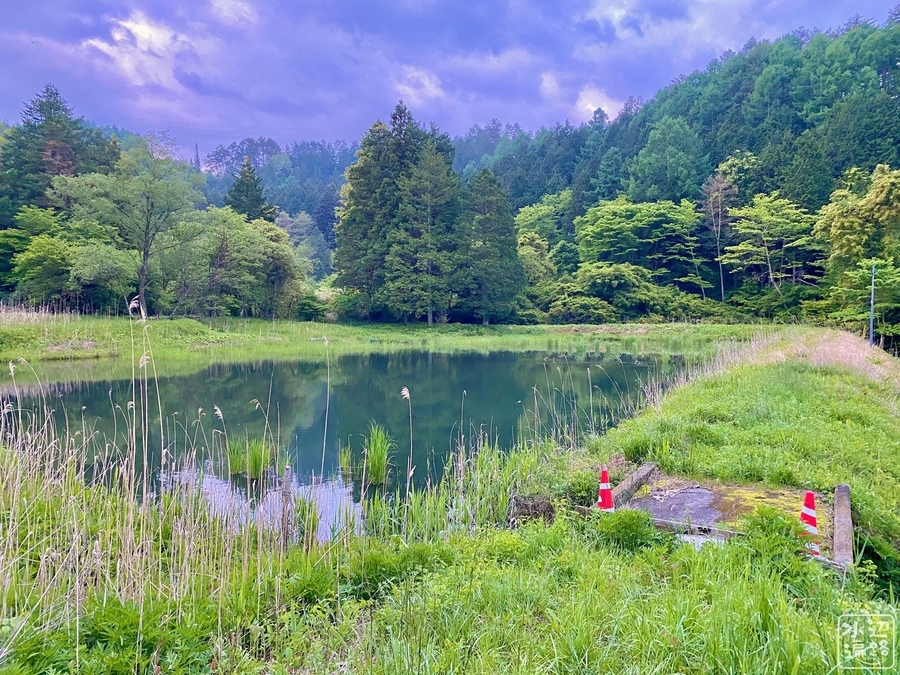 峠越えの二車線道路沿いにある池。谷戸頭に立地し、有賀峠が近い。地図を見ると三つの溜め池が池尻を寄せ合うようなかっこうだが、長野県のオフィシャルため池データベースでは三つまとめて「上野」という名で登録されている。農業用ため池であるが、管理者は有賀林野株式会社となっている。