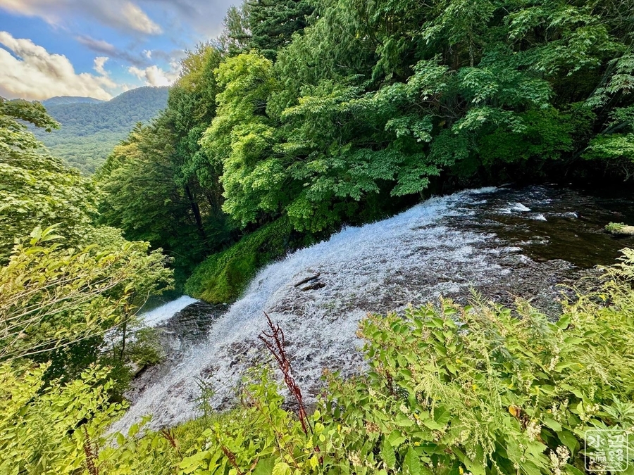 溶岩堰き止め湖の吐き出しが滝になっているのは、中禅寺湖と同じ構造。